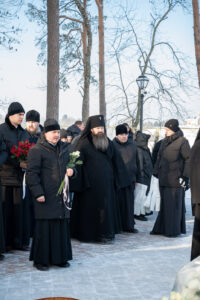 Затем на месте погребения Митрополита Филарета за Крестовоздвиженским храмом Его Высокопреосвященство совершил заупокойную литию.