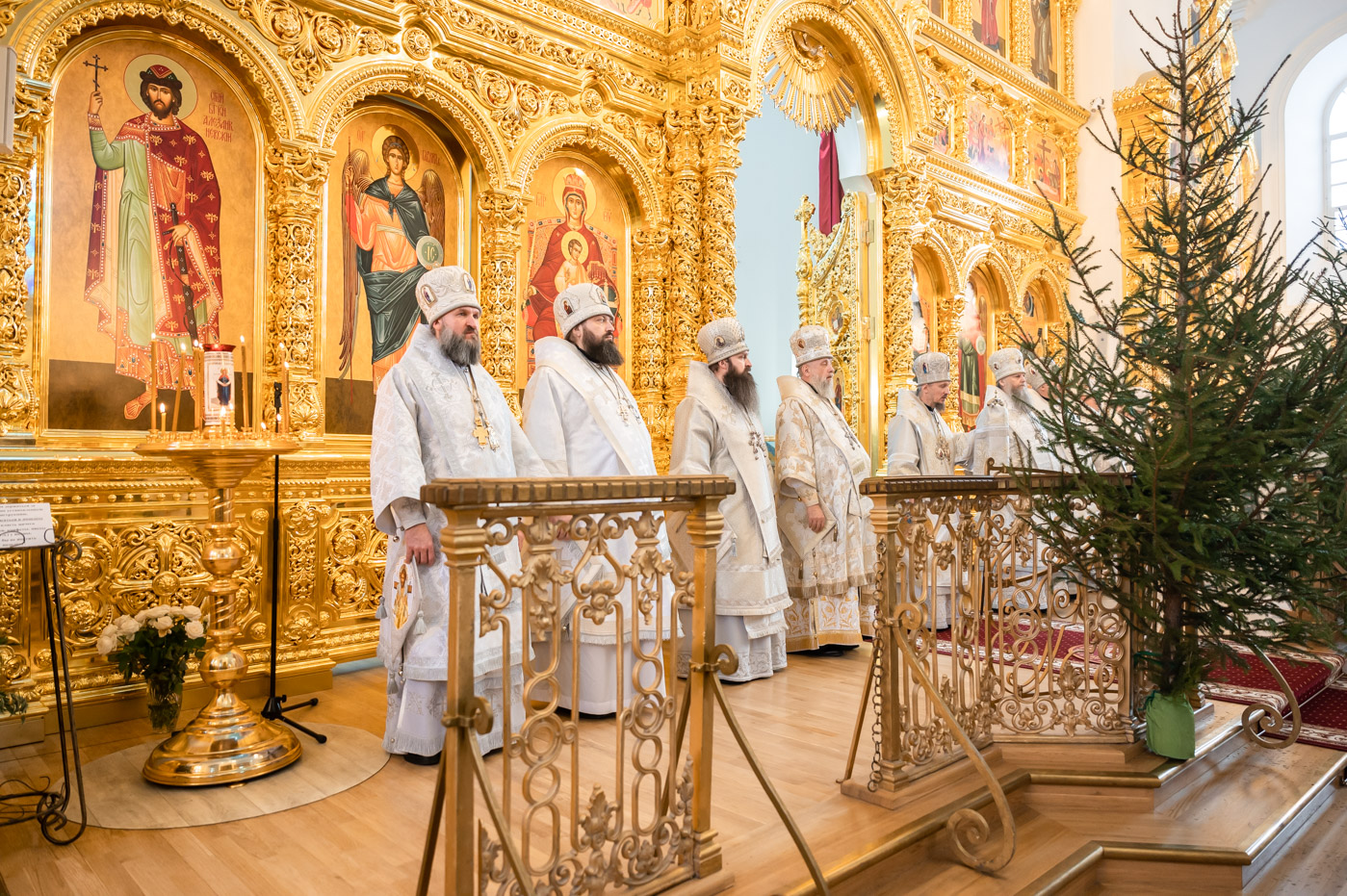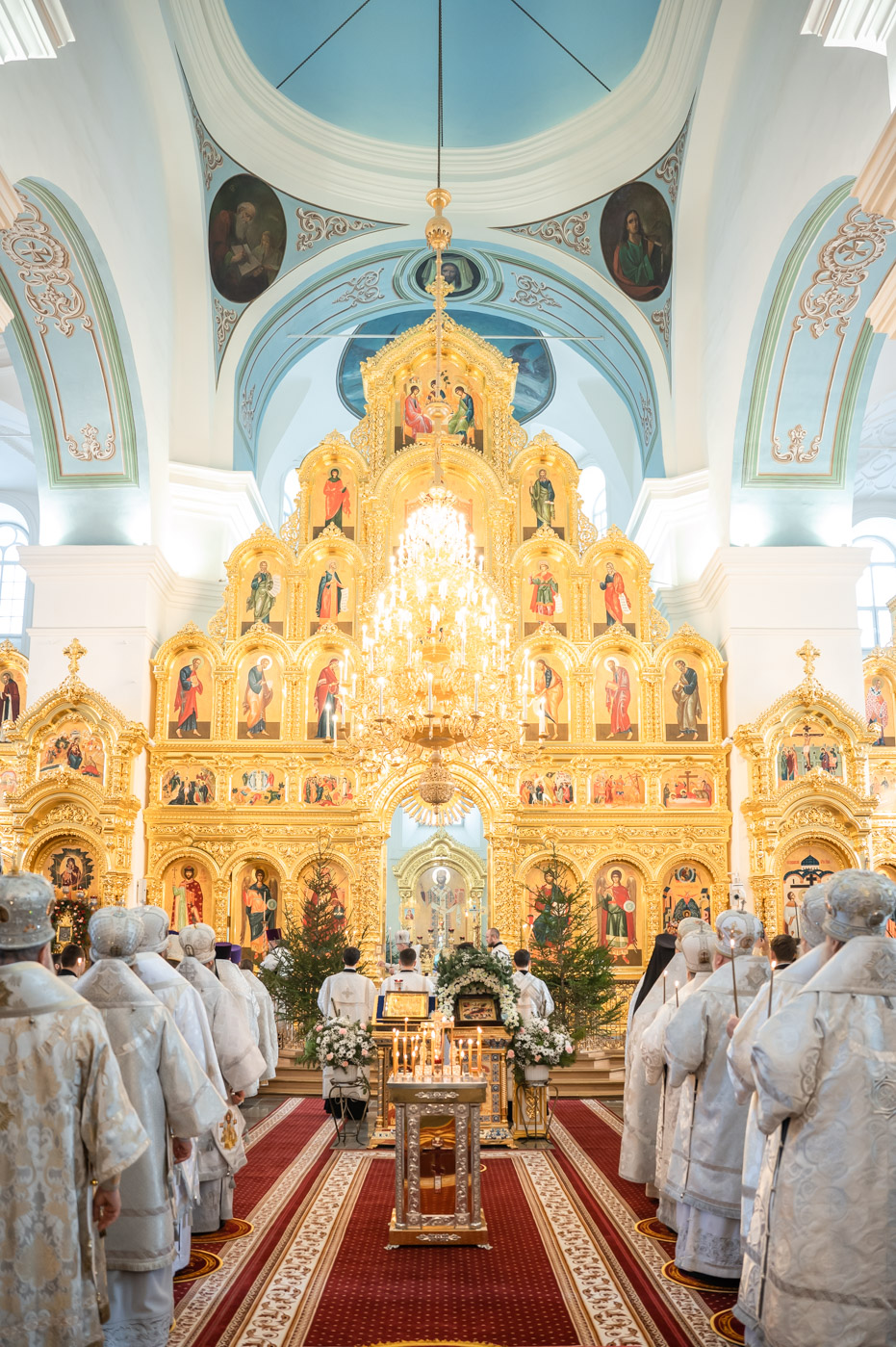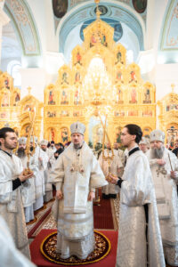 За Божественной литургией в Свято-Успенском соборе обители Его Высокопреосвященству сослужили: наместник Жировичского монастыря архиепископ Новогрудский и Слонимский Гурий, архиепископ Брестский и Кобринский Иоанн, архиепископ Гомельский и Жлобинский Стефан, архиепископ Гродненский и Волковысский Антоний, епископ Полоцкий и Глубокский Игнатий, епископ Борисовский и Марьиногорский Амвросий, епископ Пинский и Лунинецкий Георгий, викарий Витебской епархии епископ Друцкий Евсевий.